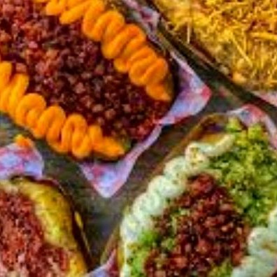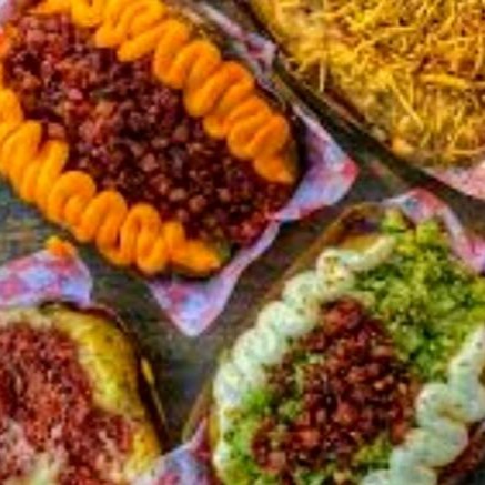 Deliciosa batata recheada com manteiga, tempero da casa, mussarela, Catupiry, barbecue, frango desfiado, calabresa, bacon e milho.