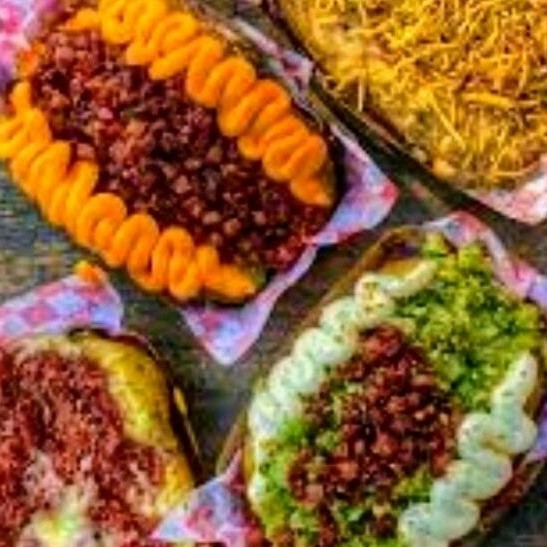Deliciosa batata recheada com manteiga, tempero da casa, mussarela, Catupiry, milho, ovo e bacon.