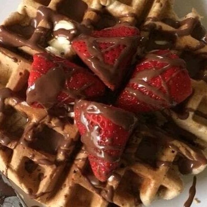 Deliciosa massa de waffle, crocante por fora e macio por dentro, acompanhado de Nutella e morango.