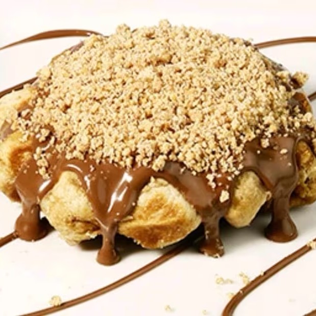 Deliciosa massa de waffle, crocante por fora e macio por dentro, acompanhado de Nutella e granulado.