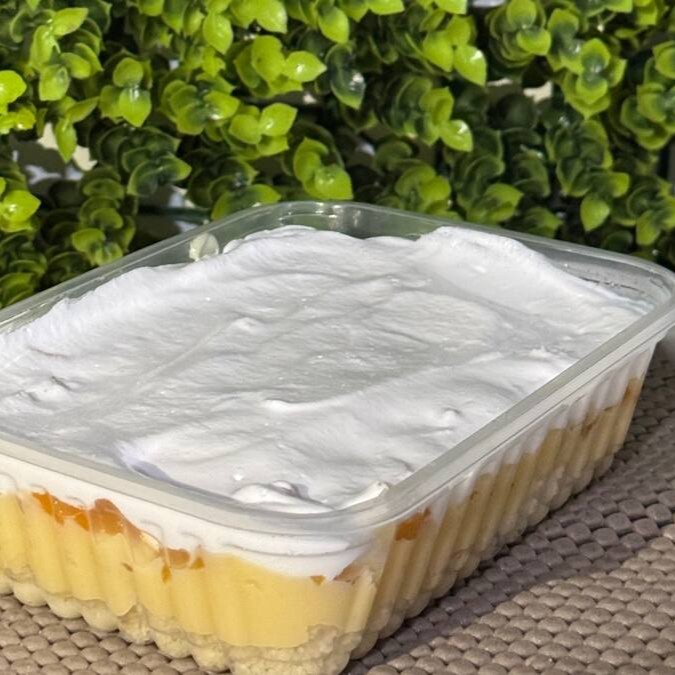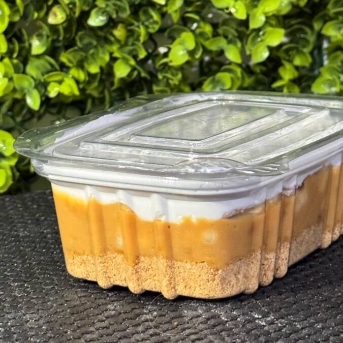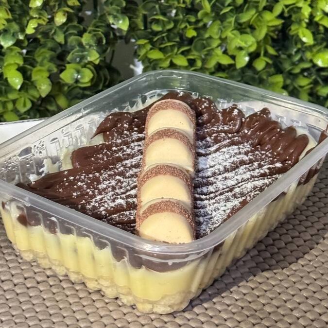Farofinha de bolacha, Doce de Leite Moça, Banana, finalizado com Chantilly. Embalagem 250ml