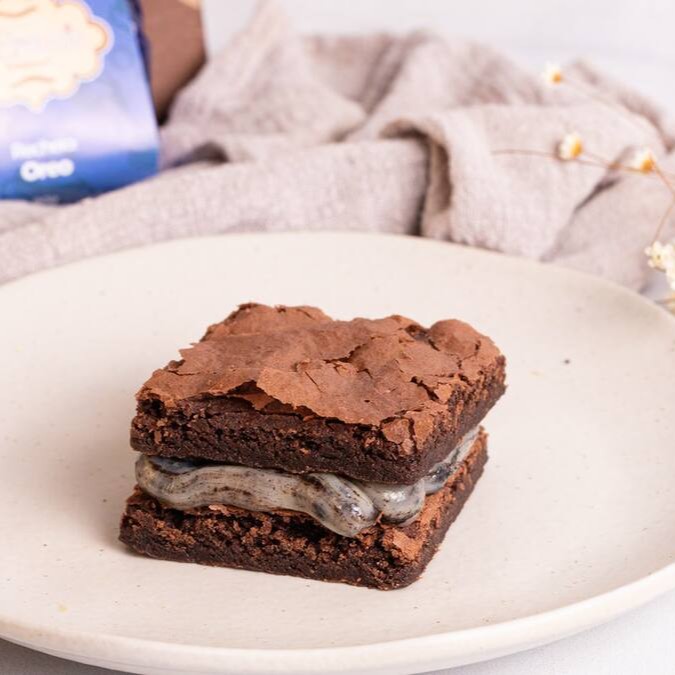 Brownie molhadinho por dentro e casquinha crocante por fora. (70g) Dica: Tire o brownie da embalagem e aqueça no micro-ondas por 10 segundos.