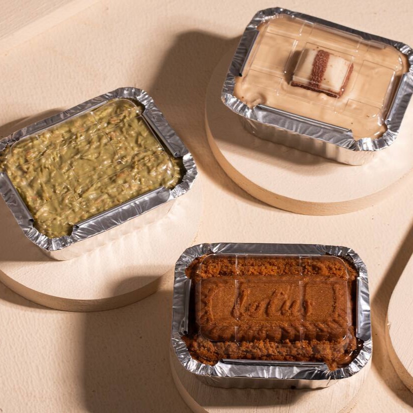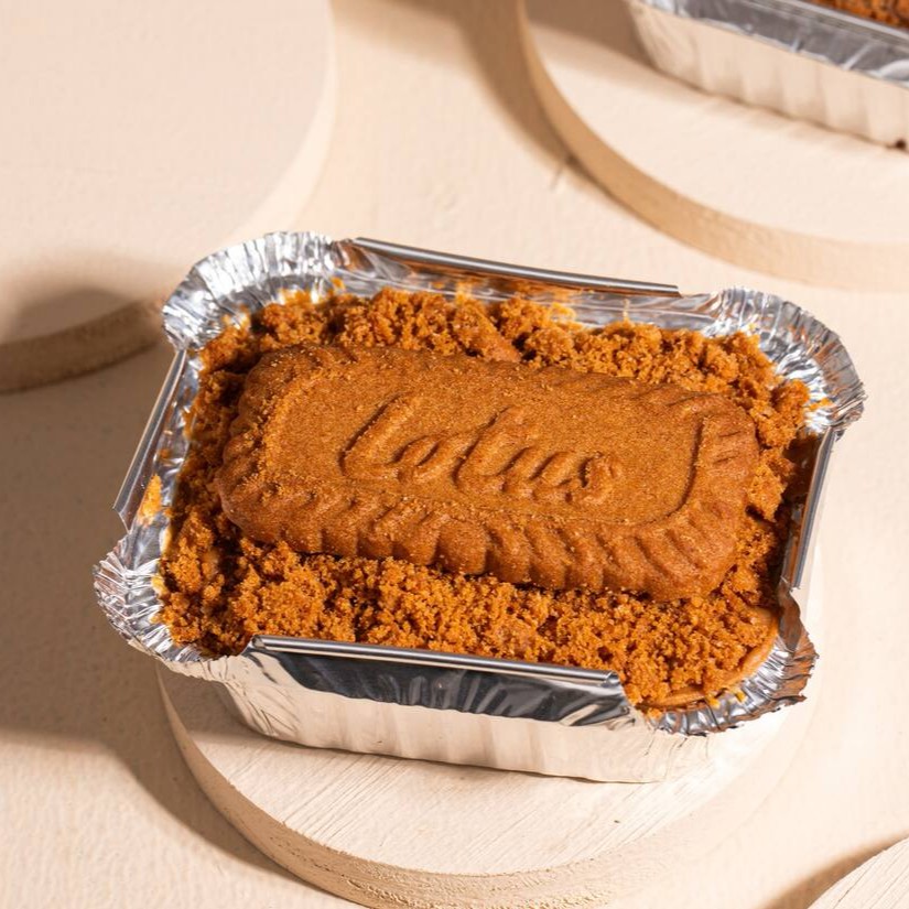 Marmitinha de brownie com uma camada de creme de lotus e a bolacha por cima (100g)