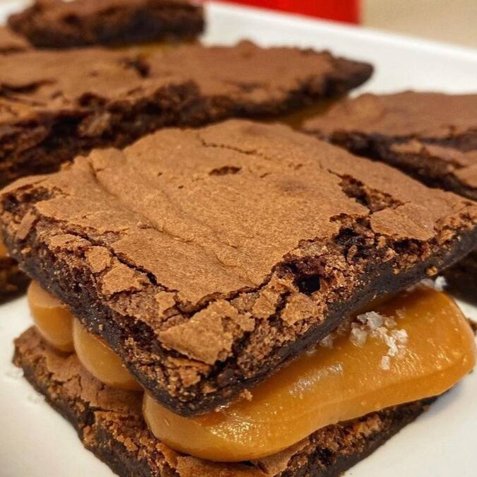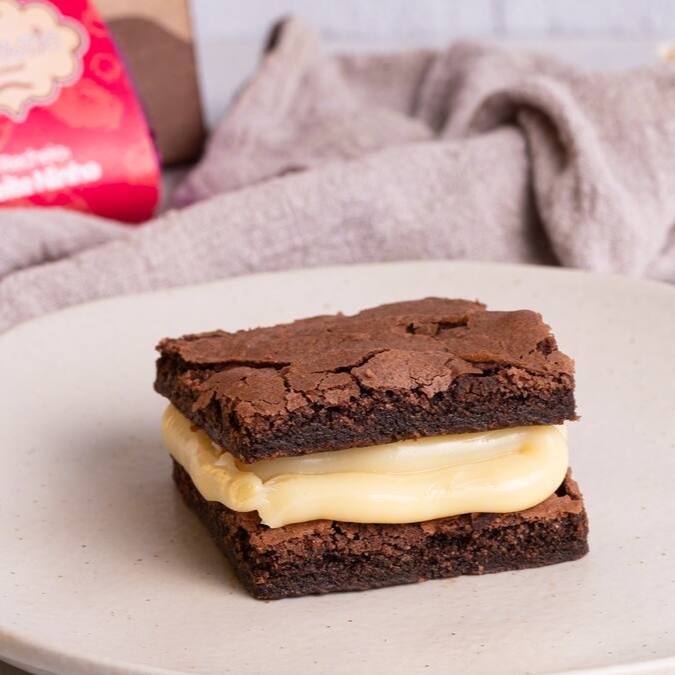 Brownie 6x6cm recheado com brigadeiro de caramelo e flor de sal (90g)