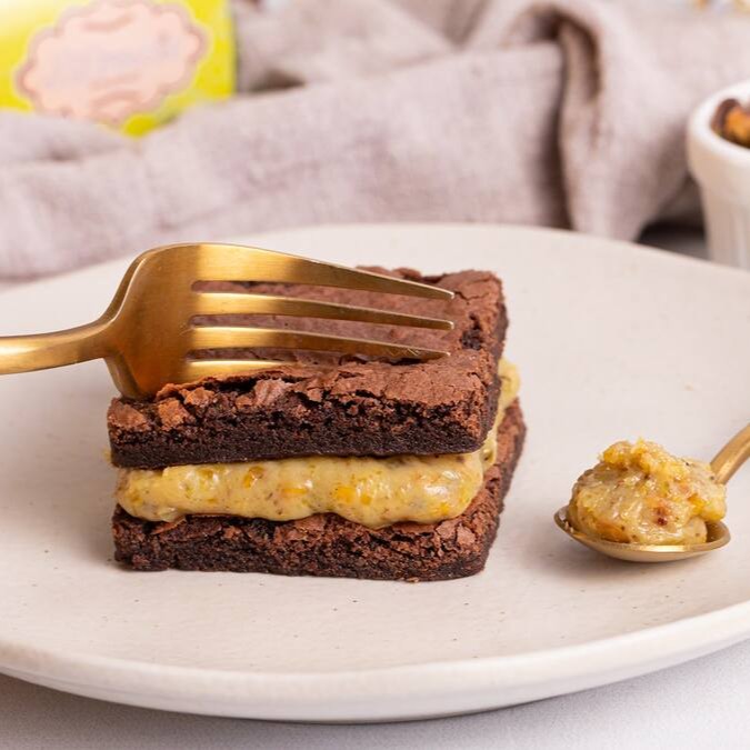 Brownie recheado com brigadeiro artesanal e pedaços de pistache (90g)