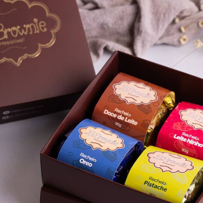 Escolha 4 brownies e receba em uma caixa presenteável linda (brinde!).