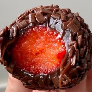Apresentamos a incrível fusão de sabores com as aclamadas Coxinhas de Morango. Este doce sublime traz morango fresco e suculento, cuidadosamente envoltos em um brigadeiro meio amargo de textura cremosa extraordinária. O toque final é dado pelo granulado gourmet de chocolate puro, que acrescenta uma textura irresistivelmente crocante e um toque de luxo a cada mordida.