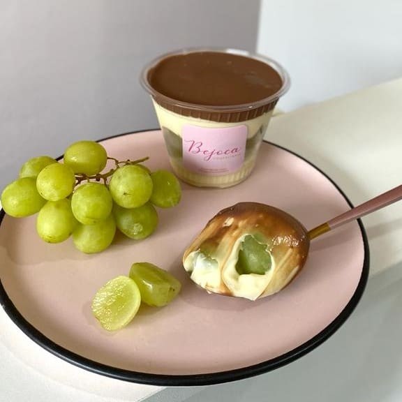 Composto por brigadeiro branco bem cremoso, Uvas verdes sem semente e finalizado com ganhache de chocolate meio amargo.