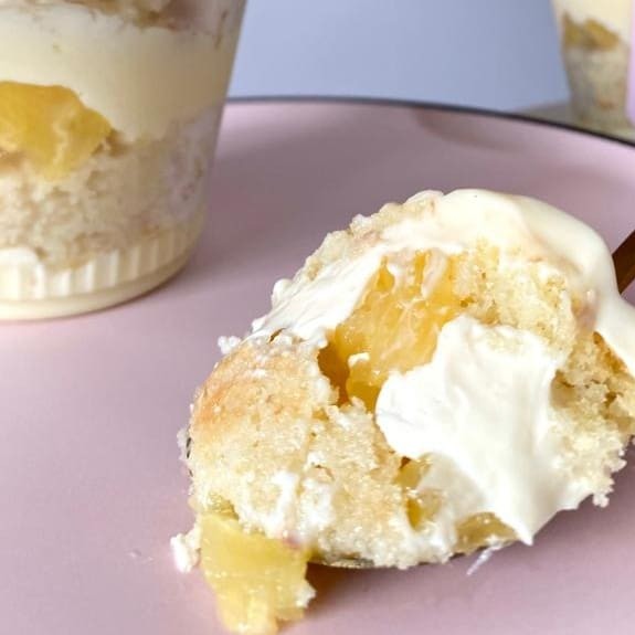 Composto por nosso brigadeiro branco cremoso, intercalado com massa pão de ló molhadinho e pedaços de abacaxi.
