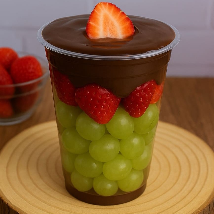 Delicioso fundue no copo de 500 ml de morango e uva tompson