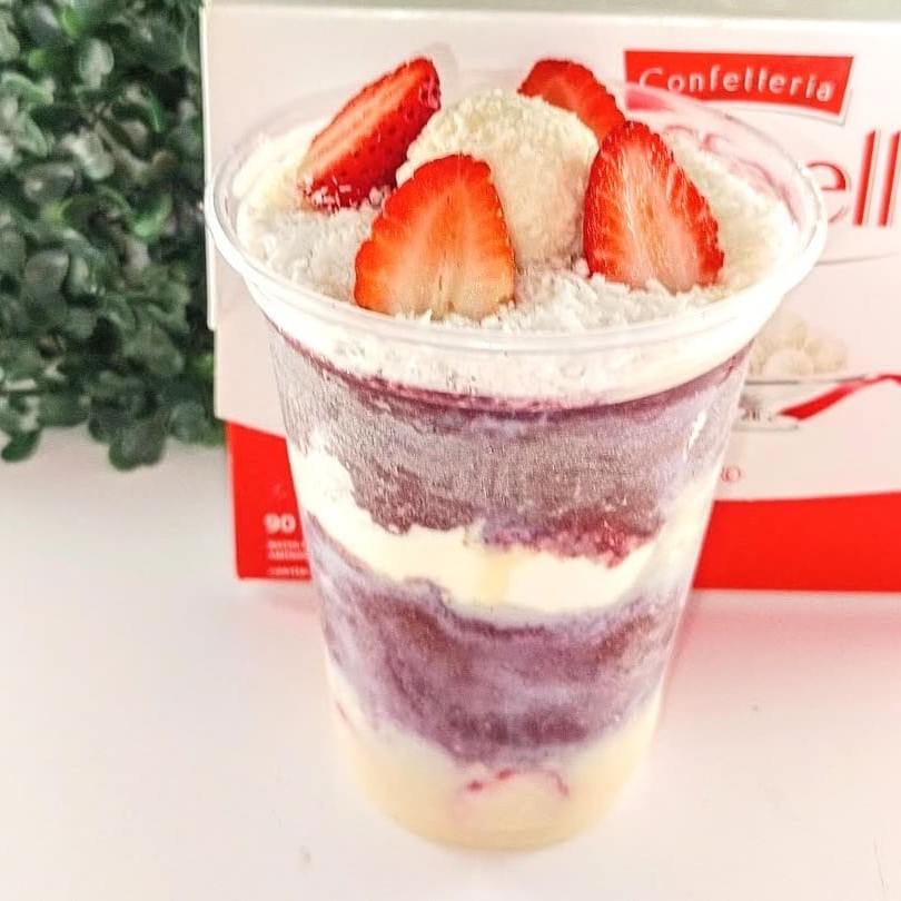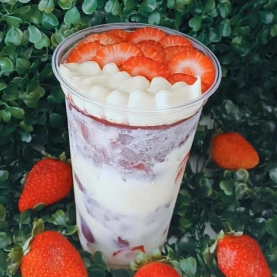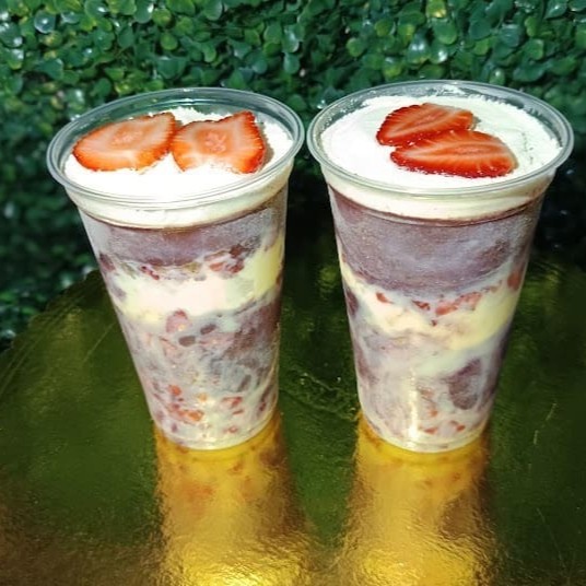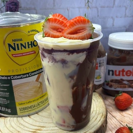 Dois copos 500ml com leite condensado, leite em pó e morango