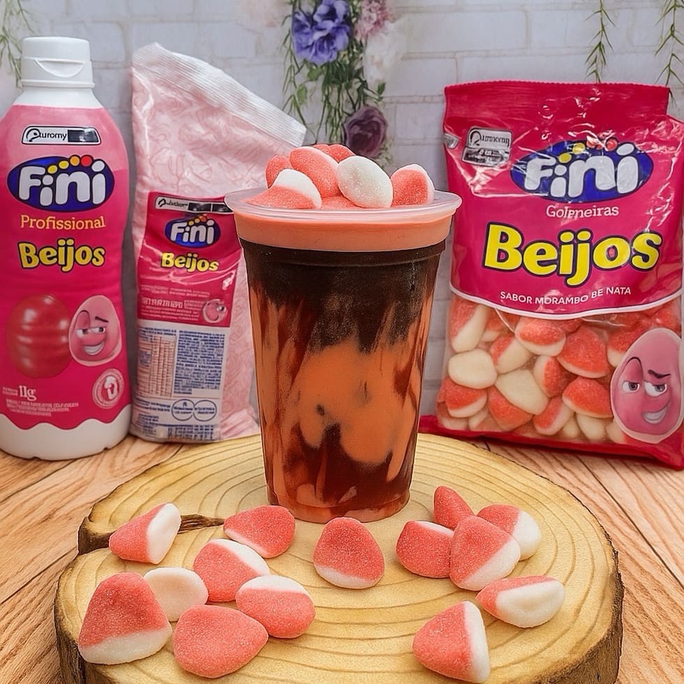 Acompanha, recheio Fini beijos,calda Fini Beijos e Fini Beijos