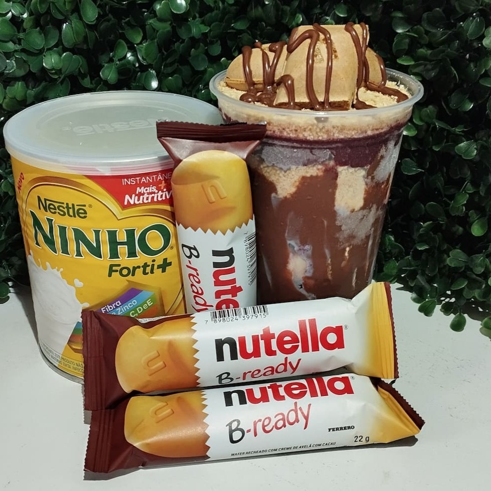 Açai acompanha leite condensado ,leite em pó creme de avelã Ou Nutella e Kinder bueno