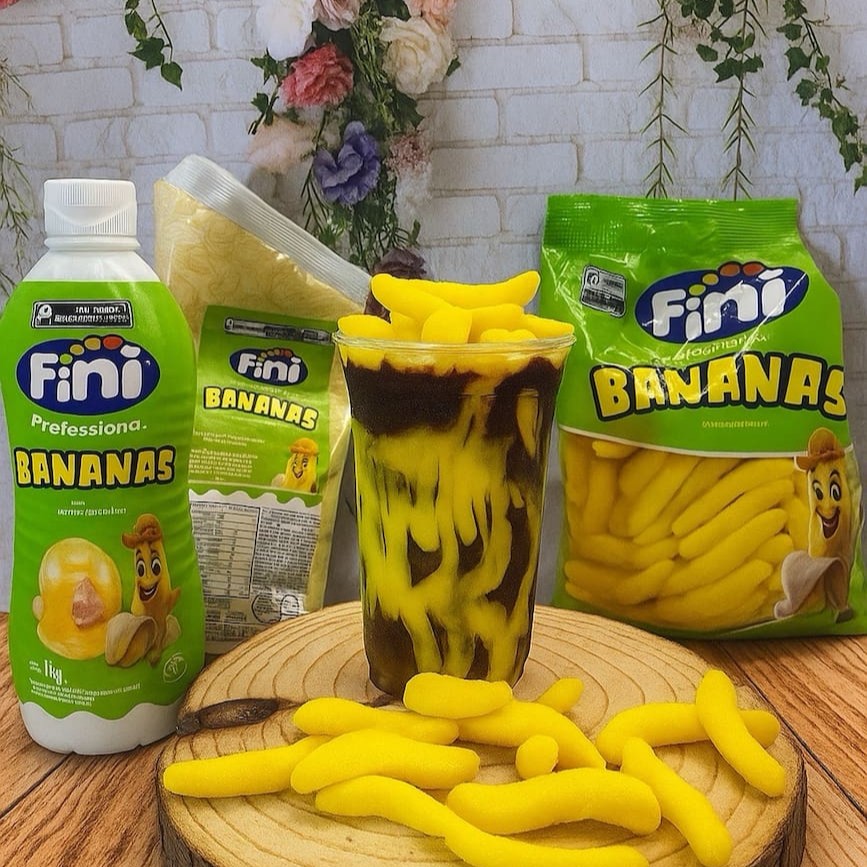 Acompanha calda Fini bananas recheio Fini e bananas e Fini e bananas