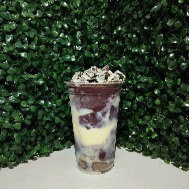 Delicioso Açaí acompanhado com leite condensado, leite em pó, Ovomaltine e Bis Oreo