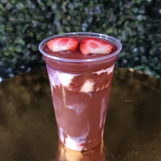 Açaí na Garrafa com leite em pó e mousse de Morango