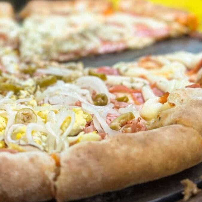 Deliciosa Pizza Grande 1/2 Strogonoff de Carne 1/2 6 Queijos