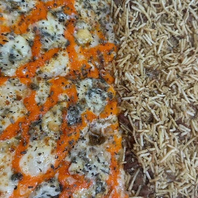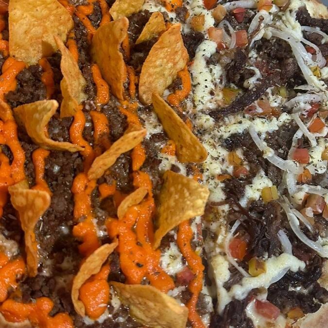 Deliciosa Pizza Grande 1/2 Nachos 1/2 Costela