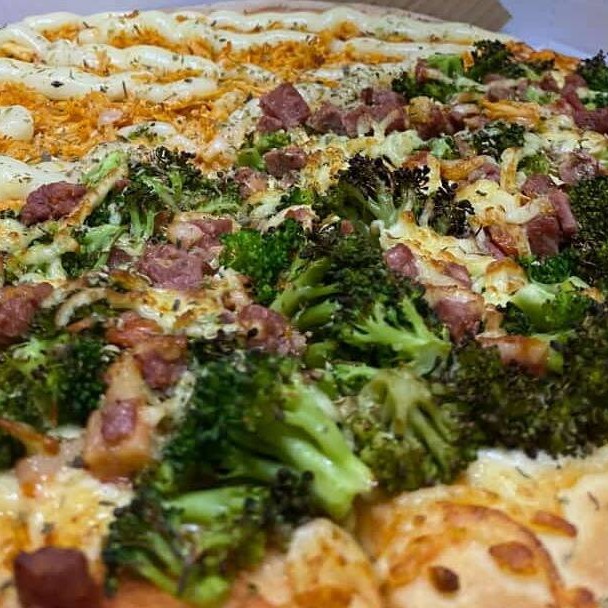 Deliciosa Pizza Grande 1/2 Brócolis com Bacon 1/2 Frango Catupiry