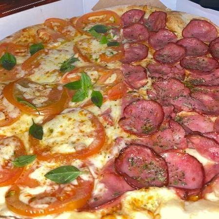 Deliciosa Pizza Grande 1/2 Frango Catupiry 1/2 Calabresa