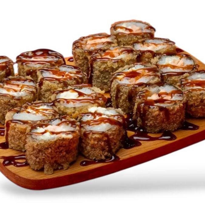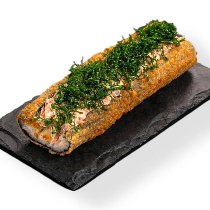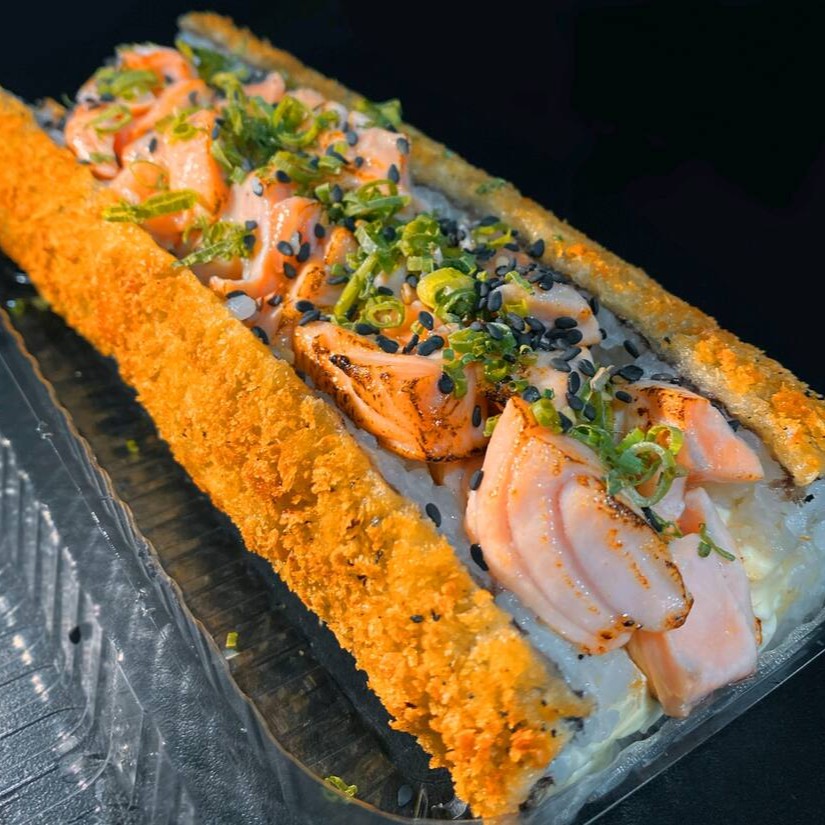 Super bem servido e recheado com arroz e um cremoso cream cheese em uma alga empanada em nossa farinha Panko! Depois de aberto e recheado com salmão grelhado, e finalizado com batata crispy.