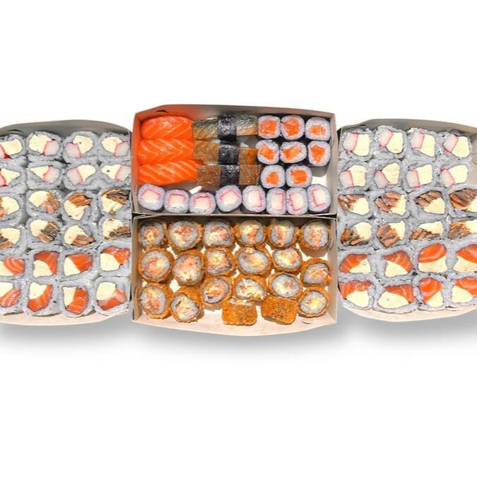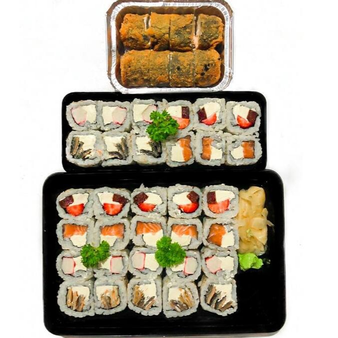 10 Uramaki Filadélfia, 10 uramaki romeu e julieta, 10 uramaki skin, 10 uramaki Kani, 10 Hossomaki filadélfia, 10 Hossomaki kani, 20 Hot Filadélfia.