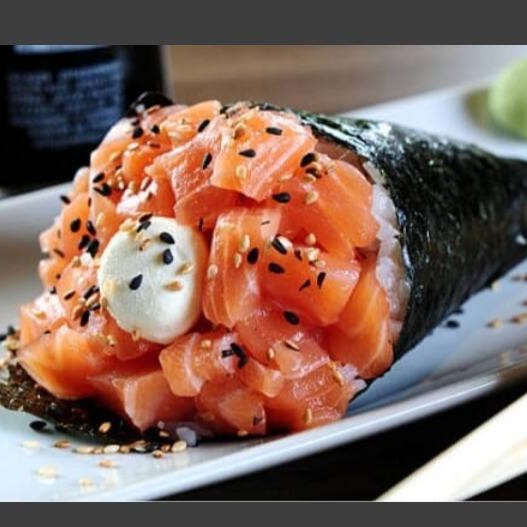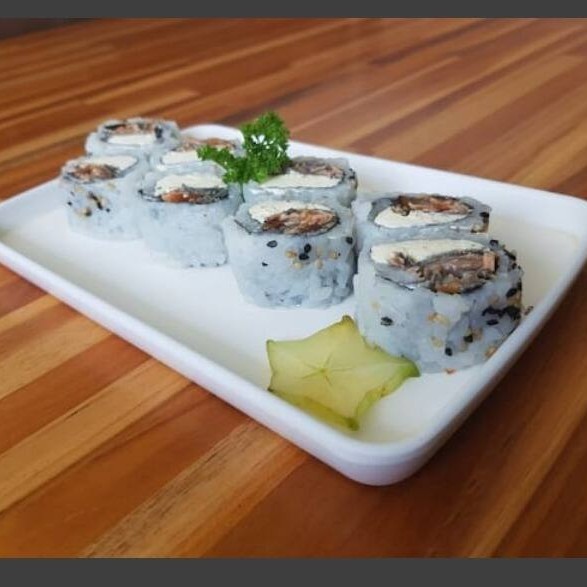 Base de arroz, salmão fresco e macio, recheado com cream cheese e finalizado com cebolinha.