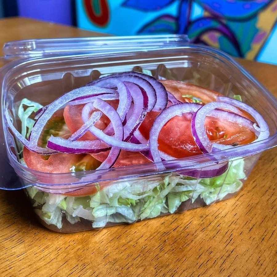 Alface, tomate e cebola roxa.