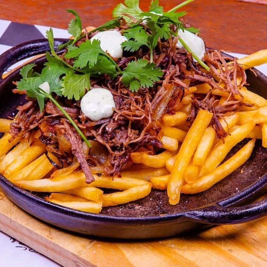 Uma explosão de sabor em cada garfada! Camada generosa de batata frita crocante, coberta com costela bovina desfiada, macia e bem temperada, finalizada com cebola dourada para dar aquele toque suculento e levemente adocicado. Uma pedida perfeita para dividir (ou não!) e se deliciar com esse combo irresistível de texturas e sabores.