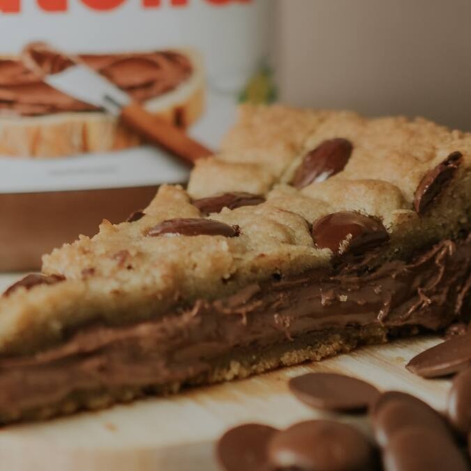 Delicie-se com nossa irresistível fatia de cookie, recheada com o cremoso e único sabor de Nutella Pura e finalizado com gotas de chocolate nobre meio amargo. Uma novidade no cardápio e combinação perfeita de crocância e cremosidade que vai conquistar seu paladar a cada mordida.