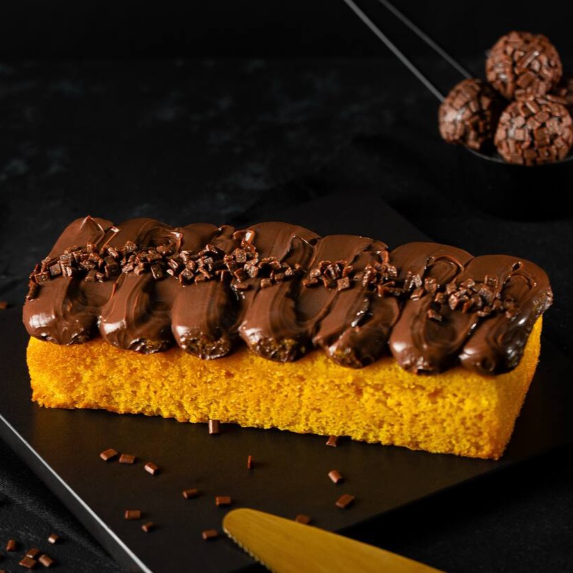 Bolo de cenoura super macio com cobertura do nosso delicioso brigadeiro feito com chocolate nobre. (Aprox. 420g)