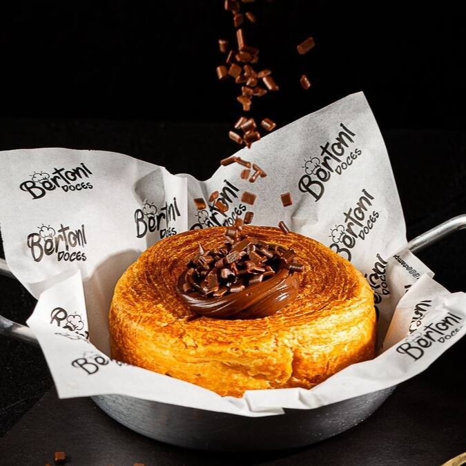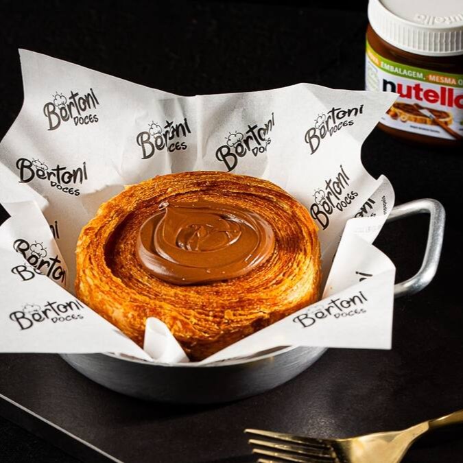 Croissant redondo macio por dentro e crocante por fora, recheado com Nutella pura.