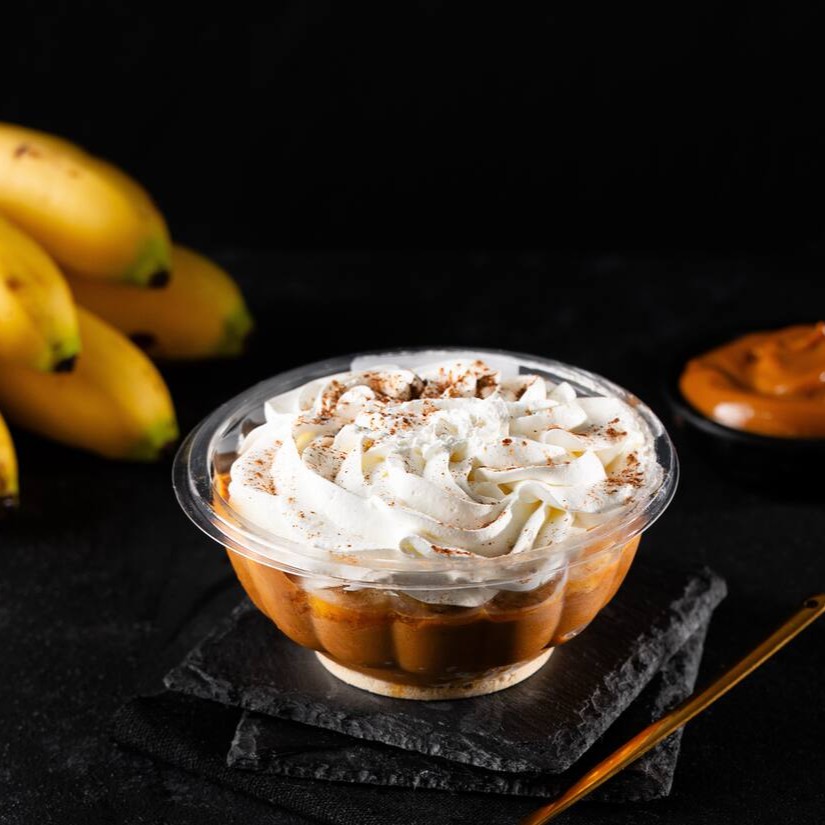 Deliciosa combinação de biscoito, creme de doce de leite suave, bananas em rodela finalizado com chantilly e canela. (250ml)