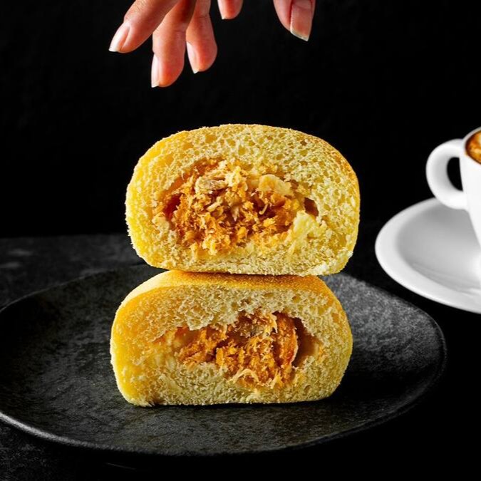 Deliciosa massa de pão de batata fofinha, com recheio de frango e requeijão. (Aprox. 100g)