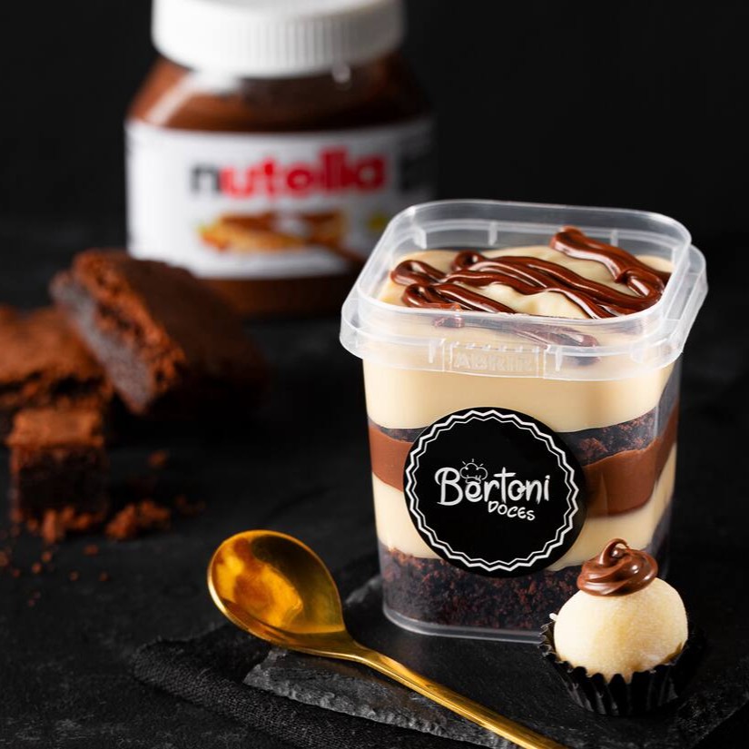 Nosso delicioso brownie com recheio de creme de Leite Ninho suave e Nutella no pote. (220ml)
