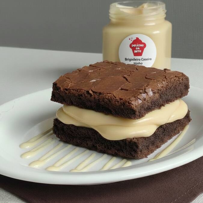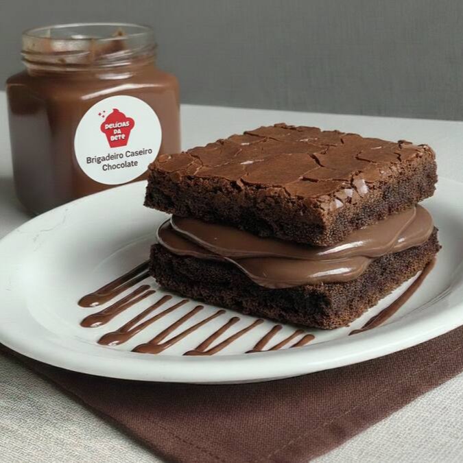A definição de perfeição! Brownie artesanal com aquela casquinha crocante irresistível por fora e interior super úmido e denso (fudgy). Recheado generosamente com um doce de leite cremoso e suave. O equilíbrio perfeito entre o cacau intenso e a doçura do recheio.
