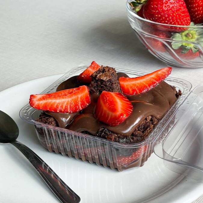 Contém: Pedaços de Brownie, Morangos e Brigadeiro Gourmet.