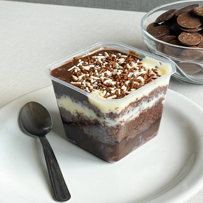 Camada generosa de creme de Ninho super cremoso, Pudim macio e aveludado e Creme de Chocolate intenso, formando uma combinação equilibrada, doce na medida certa e extremamente envolvente. Finalizada com Chantininho leve e aerado. Cada colherada entrega cremosidade, sabor e conforto. Ideal para quem não abre mão de uma sobremesa caprichada e irresistível.