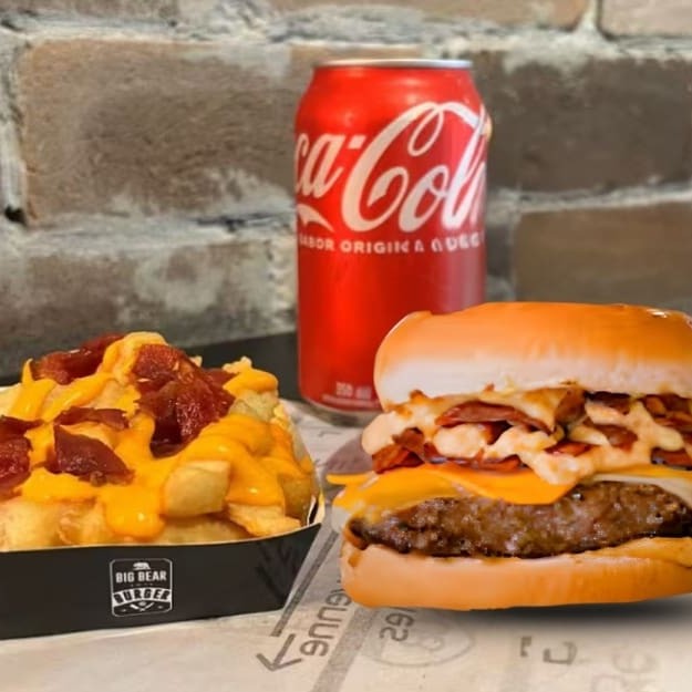 Escolha 3 hambúrgueres, 1 porção de fritas grande (Cheese Fries, Crispy Fries ou Rustic Fries) e 3 bebidas (refrigerante ou growler de chopp de 1 litro).