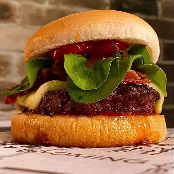 A combinação que você ama, agora com um toque extra de sabor! Delicie-se com nosso **hambúrguer Black Angus** de **fraldinha (120g)**, com **queijo prato** derretido e **bacon em cubos** crocantes. Acompanha **alface americana**, **tomate** e nossa **maionese temperada** especial, tudo em um **pão macio** e delicioso. Para não perder nenhuma novidade e receber ofertas especiais, favorite nossa loja!