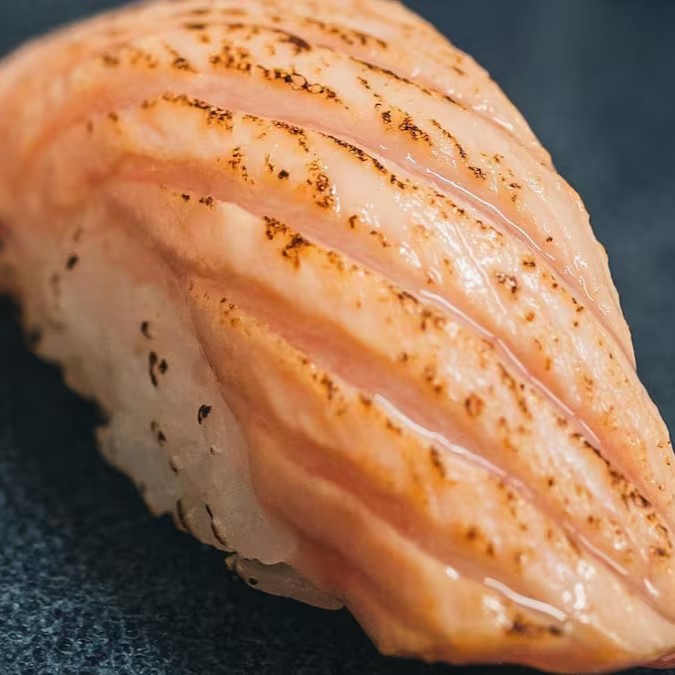 Fatia de salmão maçaricado