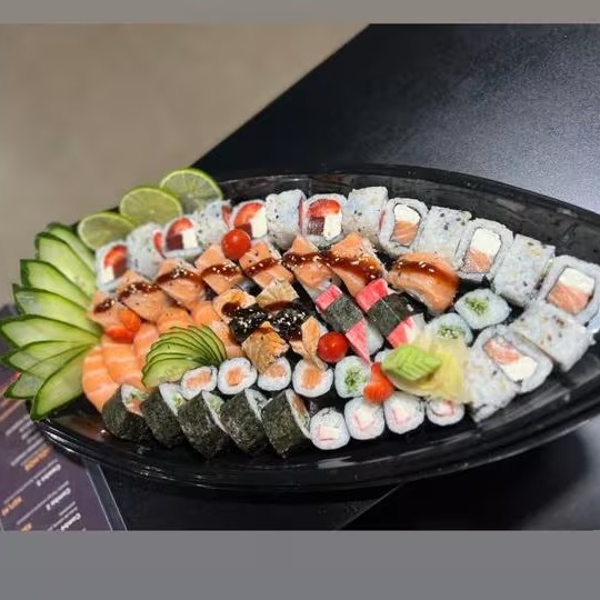 Na compra de uma barca casal de 50 peças, ganha uma porção com 8 unidades de hot Filadélfia