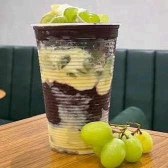 Açaí cremoso com leite condensado leite em pó e uvas picadas