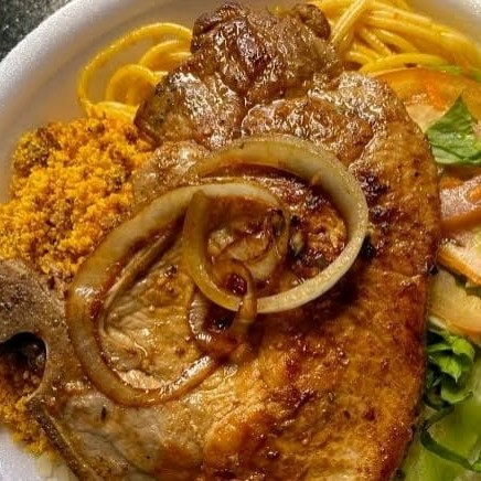 Marmita de Bisteca acebolada – Bisteca suína grelhada no ponto certo, suculenta e bem temperada, servida com cebolas douradinhas, arroz soltinho, feijão caseiro, macarrão e batatinhas. Uma refeição saborosa e reforçada!