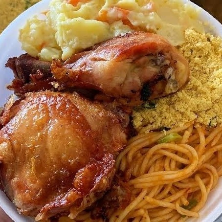Marmita de Frango Frito Frango frito crocante por fora e suculento por dentro, acompanhado de arroz, feijão bem temperado, macarrão e batatinhas fritas!