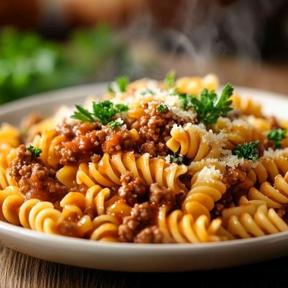 Um prato de macarrão bem saboroso, com carne moída temperada na medida certa, trazendo um equilíbrio perfeito entre o molho e a massa. É aquele clássico que aquece o coração e satisfaz a fome com muito carinho! Serve uma pessoa.