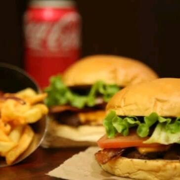 Dois hambúrgueres Salad, batatas frita e uma Coca lata 350 ml