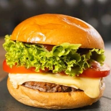 Um hambúrguer com pão macio, carne suculenta, queijo derretido, alface, tomate, cebola, molho e um toque crocante de batata palha, simples mas delicioso!