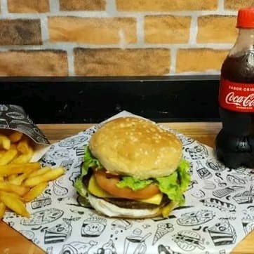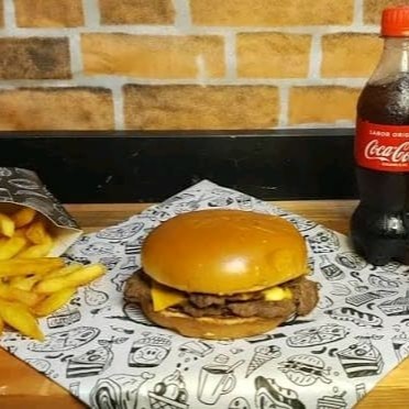 Combo completo, um hambúrguer clássico irresistível com muito sabor com acompanhamento de batatas fritas e uma coca 200 ml para matar sua fome!