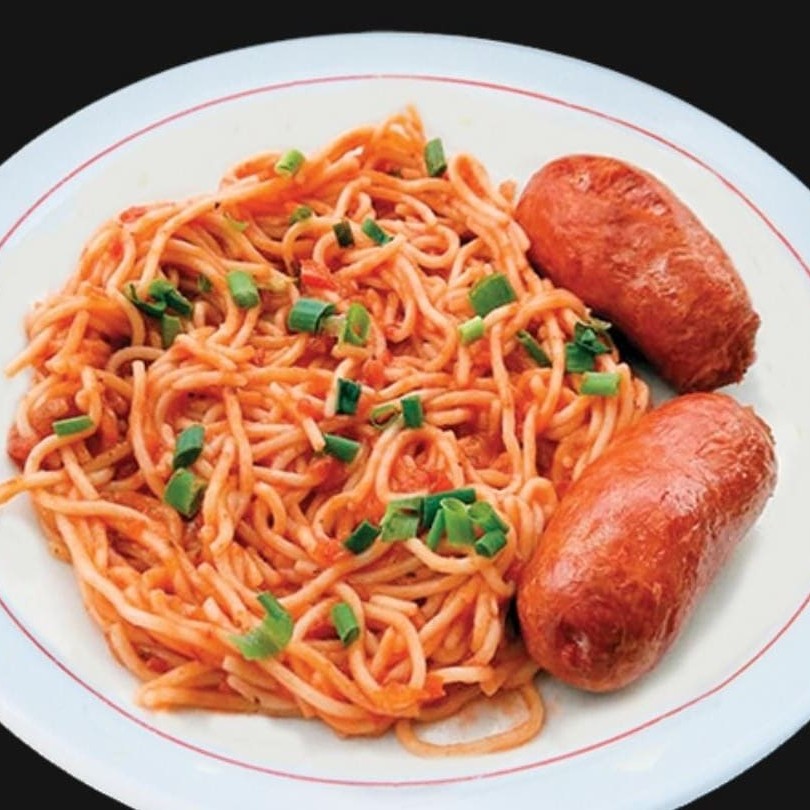 Macarrão espaguete ao molho sugo com duas linguiças toscana.